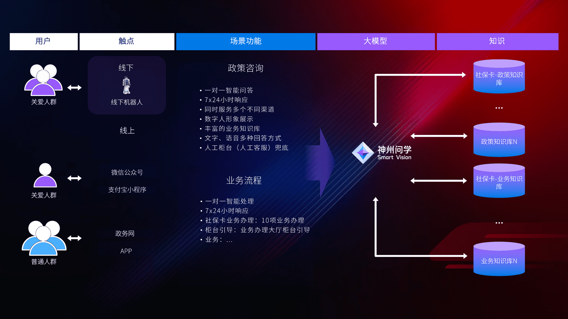 • 线上线下全覆盖:线上提供微信公众号、、、、支付宝小程序、、、政务网、、、app多种渠道,,与线下机器人形成完整服务体系。。